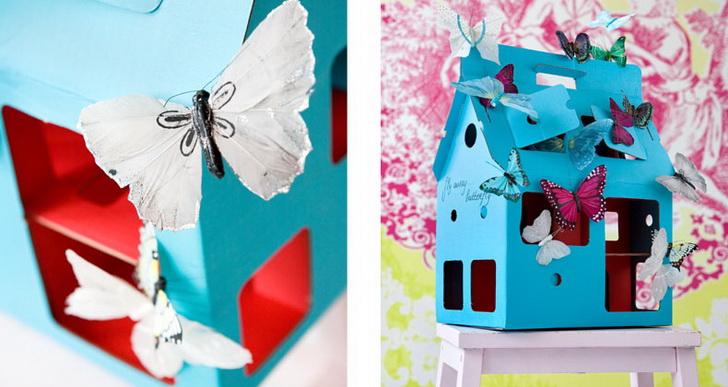Preostali Kidsonroofovi izdelki so hiše različnih oblik in velikosti – manjša hiška je tako denimo prikazana skupaj z metulji.
