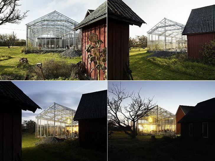 Odločili so se za stekleno hišo v velikosti 200 kvadratnih metrov. Znotraj te steklene hiše je 70 m2 pokrite površine, preostalo pa je viden vrt. Na strehi notranje hiše je našla svoj prostor tudi majhna terasa. Družina je tako v ostrem švedskem podnebju pridobila vrt, ki ni odvisen od vremenskih vplivov, klima v stekleni hiši pa je po meritvah sodeč zelo podobna podnebnim razmeram v Sevilli. Zanimiva je cenovna primerjava, saj sta investitorja za dodatnih 250 kvadratnih metrov plačala enako, kot bi ju stalo le 100 kvadratnih metrov klasično grajene hiše.